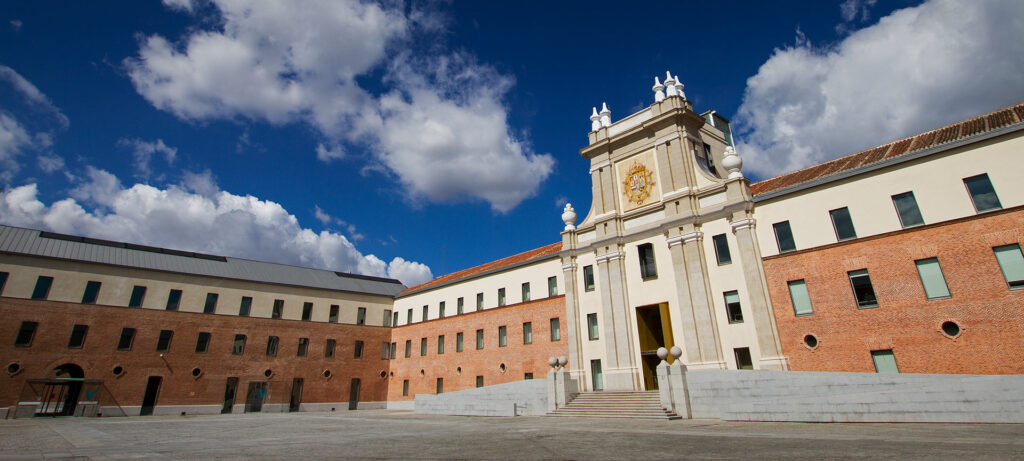 Exterior: El Conde Duque destaca por su imponente fachada de estilo neoclásico, con un diseño simétrico y líneas sobrias. El edificio está construido principalmente con ladrillo visto y está decorado con detalles de piedra y elementos ornamentales.